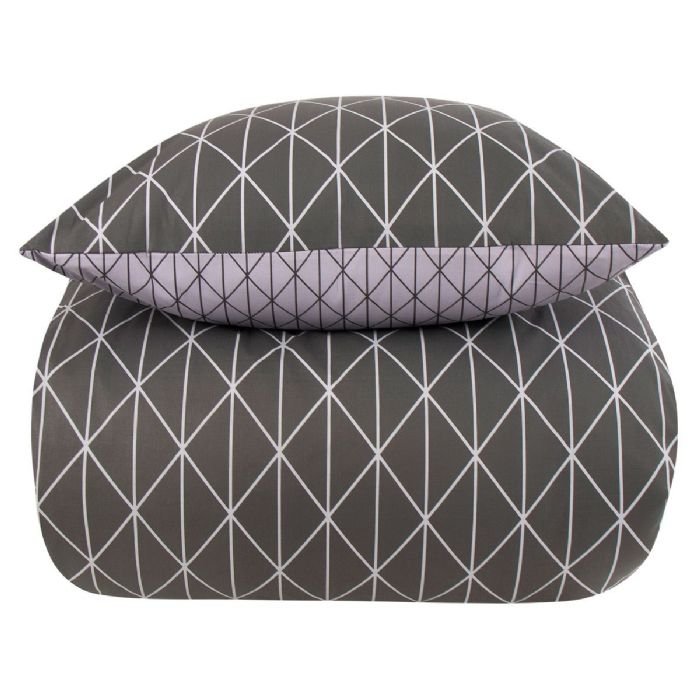 Sengetøj dobbeltdyne – 200×220 cm – Harlequin grey – Gråt sengetøj – 2 i 1 design – Dynebetræk i 100% Bomuld