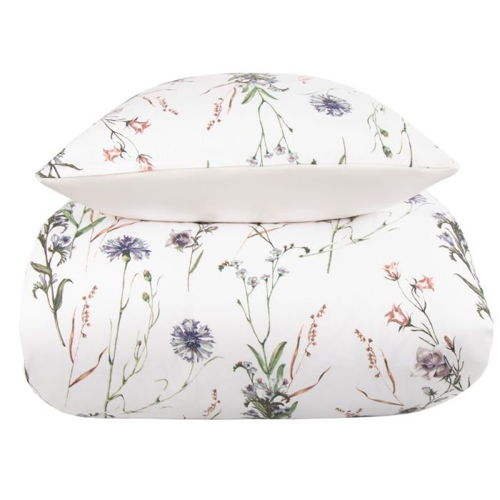 Sengetøj dobbeltdyne – 200×220 cm – Vendbart design i 100% Bomuldssatin – Corn Flower hvid – Sengesæt fra By Night