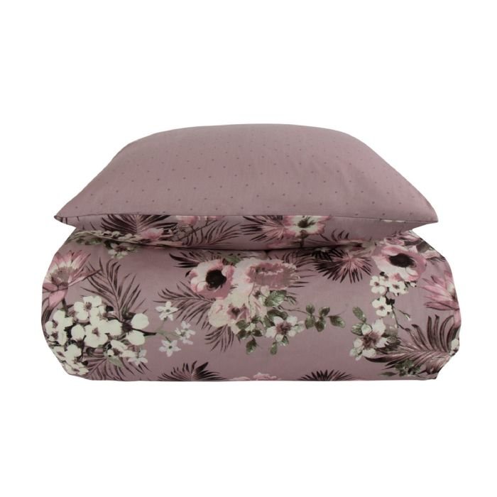 Sengetøj dobbeltdyne – 200×220 cm – Vendbart design i 100% Bomuldssatin – Flowers & Dots lavendel – Sengesæt fra By Night