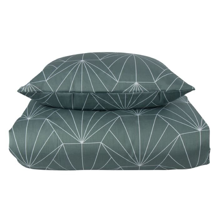 Sengetøj dobbeltdyne - 200x220 cm - Vendbart design i 100% Bomuldssatin - Hexagon støvet grøn - Sengesæt fra By Night
