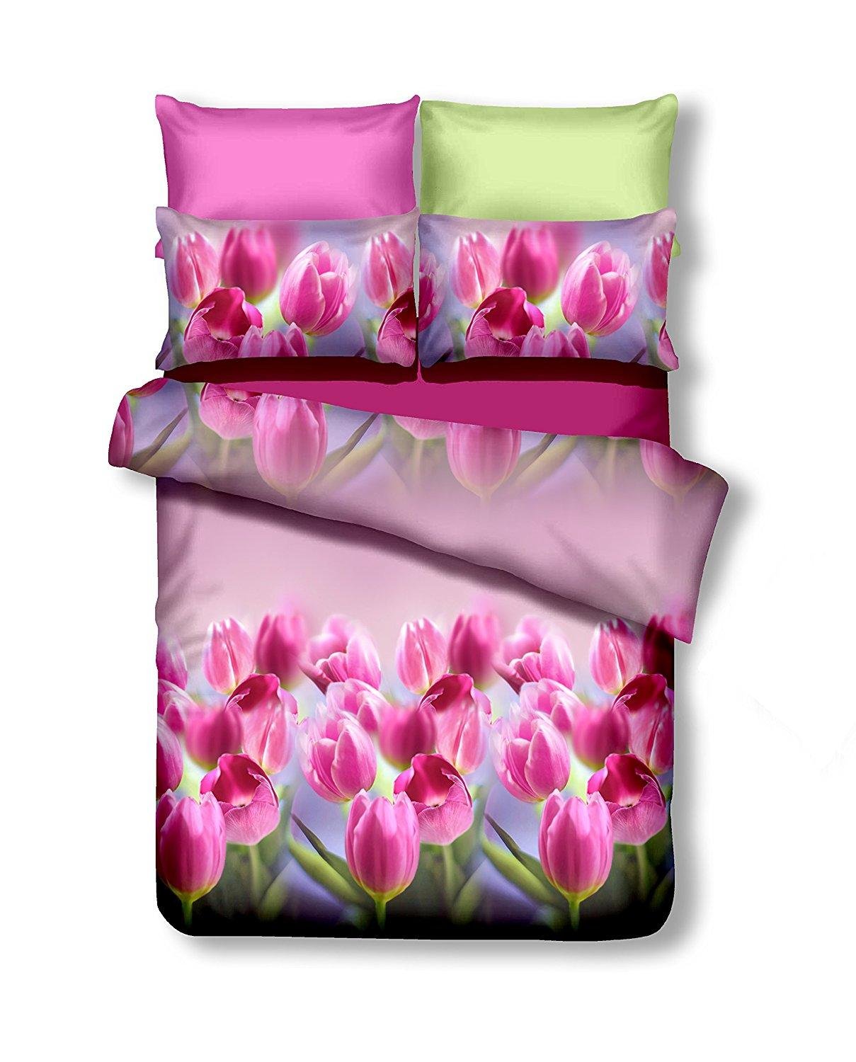 Sengetøjssæt dobbeltdyne DecoKing Emerald lyserød blomst, 200×220 + 2x 80×80