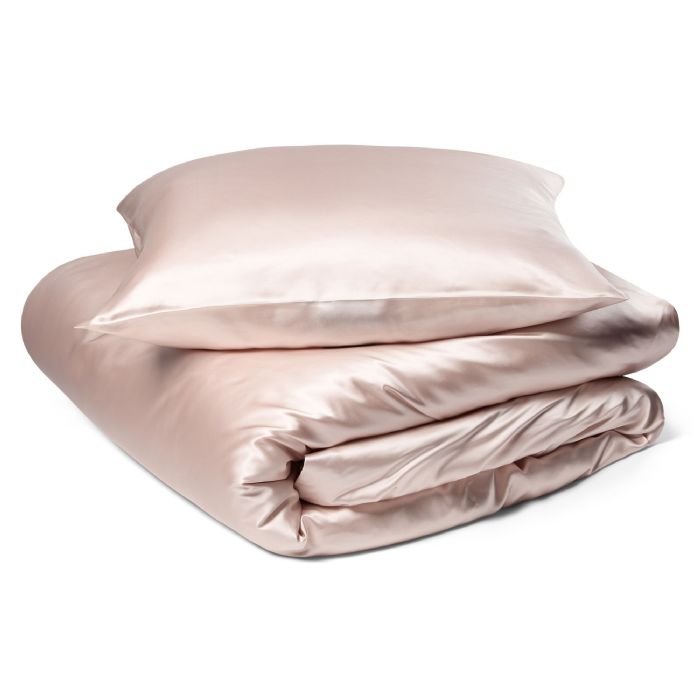 Silke sengetøj 200×220 cm – Støvet lyserød sengetøj til dobbeltdyne – 100% morbærsilke – By Borg